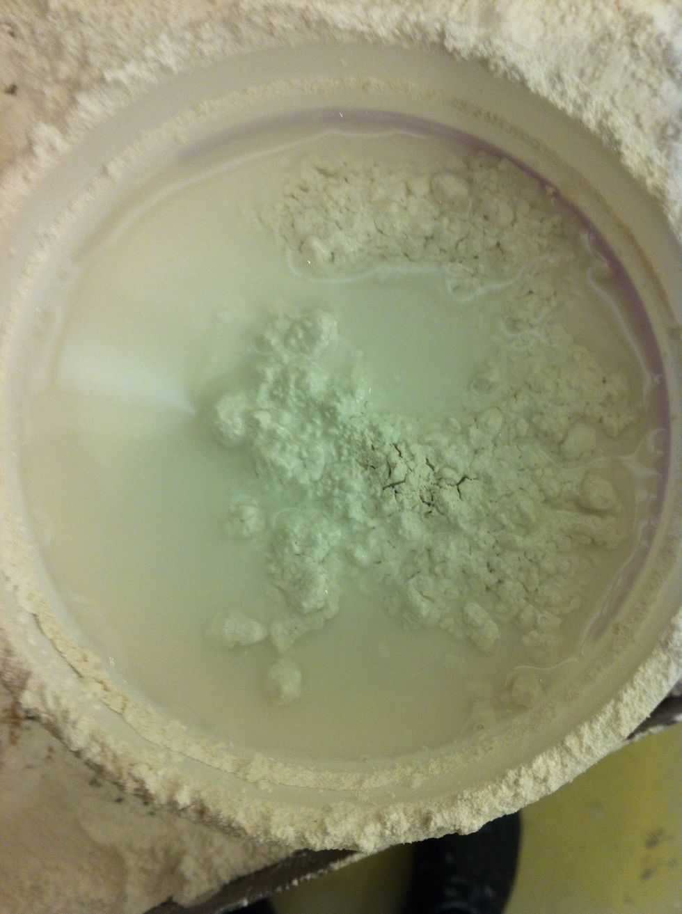 Figure out how much plaster you want to make. Pour water into your pail to about 1/2 the volume of desired plaster.