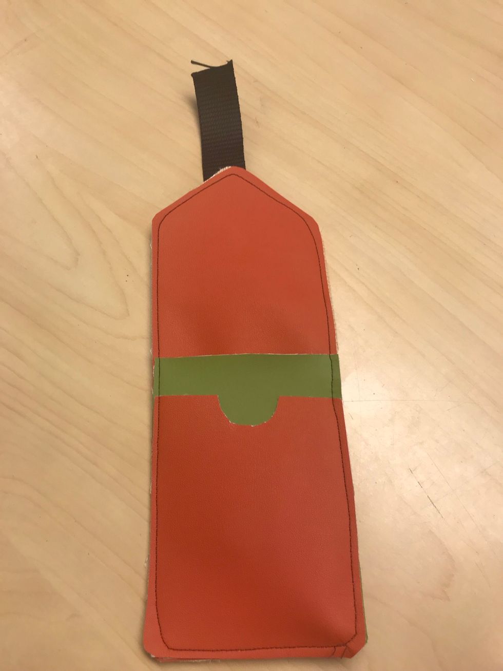 Markera på den andra långa tygbiten så hålet hamnar på samma plats.