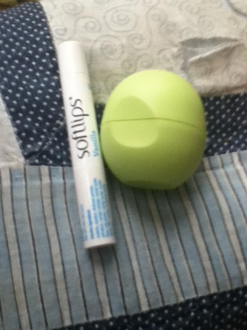 Then apply your other lip balm this is a eos and its honeysuckle honey dew