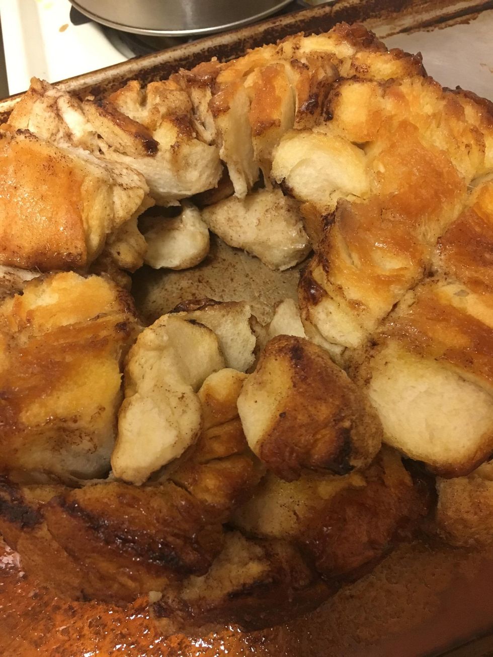 Pour melted butter/brown sugar into the bundt pan