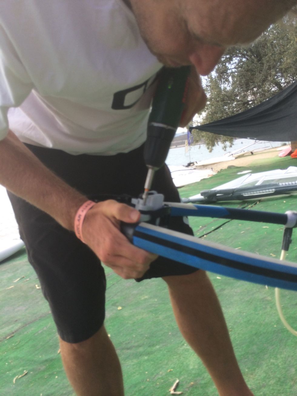 Now add the lever and the hinge parts and finally screw everything together. Important: you have to use an electronic screw-driver.