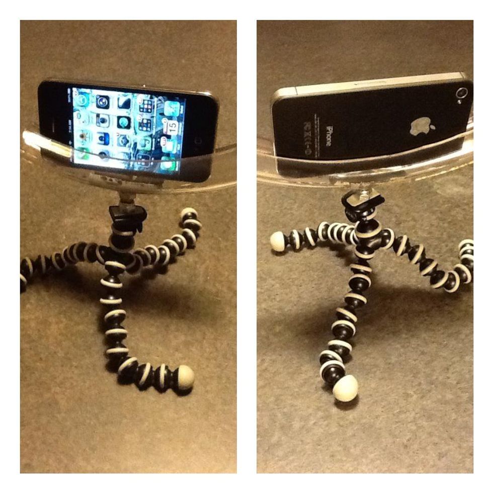 Cover the bolt head with tape, to avoid scratching your smartphone. Attach tube to your tripod. This one is a Gorillapod.