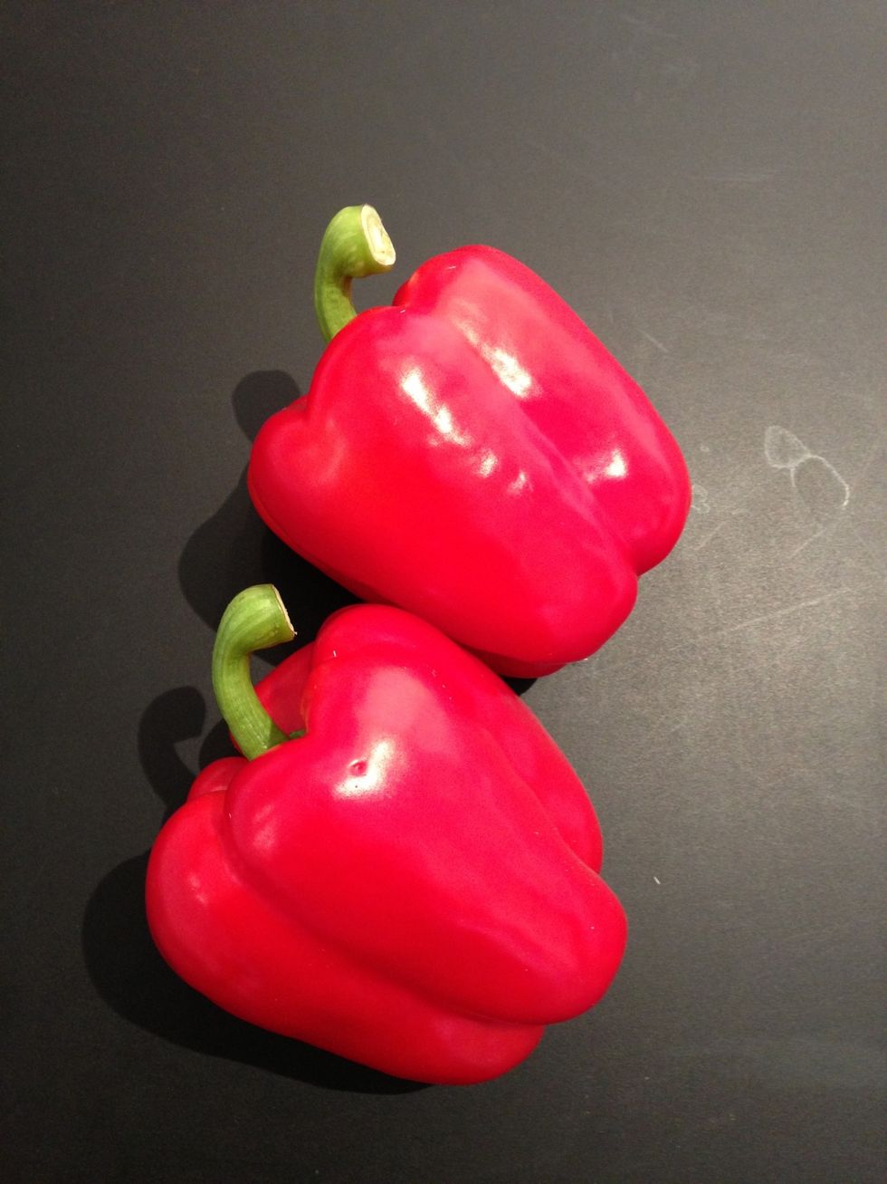 If you prefer in the oven. Cut the bell pepper into halves and broil them on medium for 15-20mins. Put them in a closed container. Take out the skin when cold. Wash drain.
