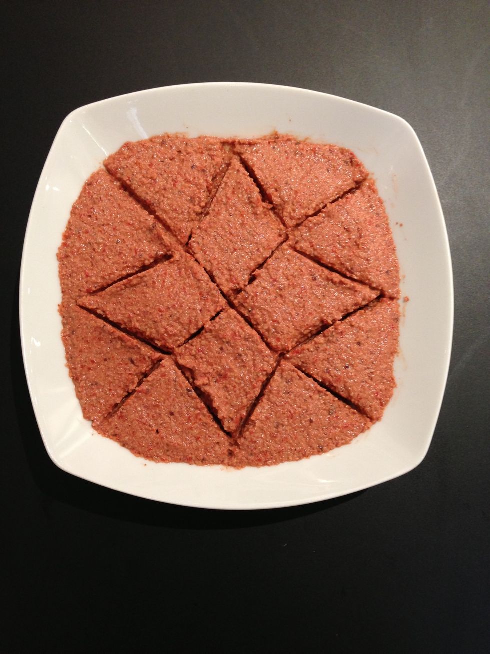 red bell peppers and walnut sauce. Traditionally made with bread crumbs. Which are Replaced by ground flaxseeds. So no- gluten. Spice it up if you wish. Serve with grilled fish or as a dip.