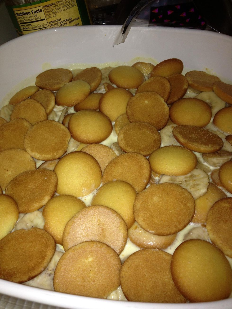 Layer pan or casserole dish with wafers then bananas and followed by your pudding mix and repeat until your pudding mix is gone.