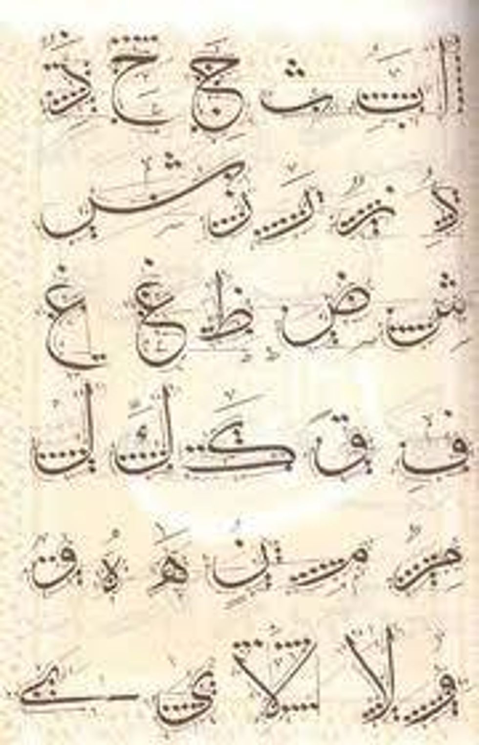 في البدايه نسطر الورقه ونكتب بعرض قلم الخط العربي كتابة حرف الميم < تسمى الميم الالفية >