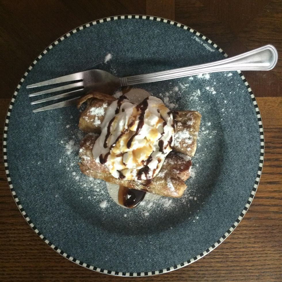 Cut side of bread, spread Nutella, deep in egg, Heat the PAN with butter, and fry the egg rolls until light brown. Serve with whip cream and chocolate syrup, powder sugar on top. 😍