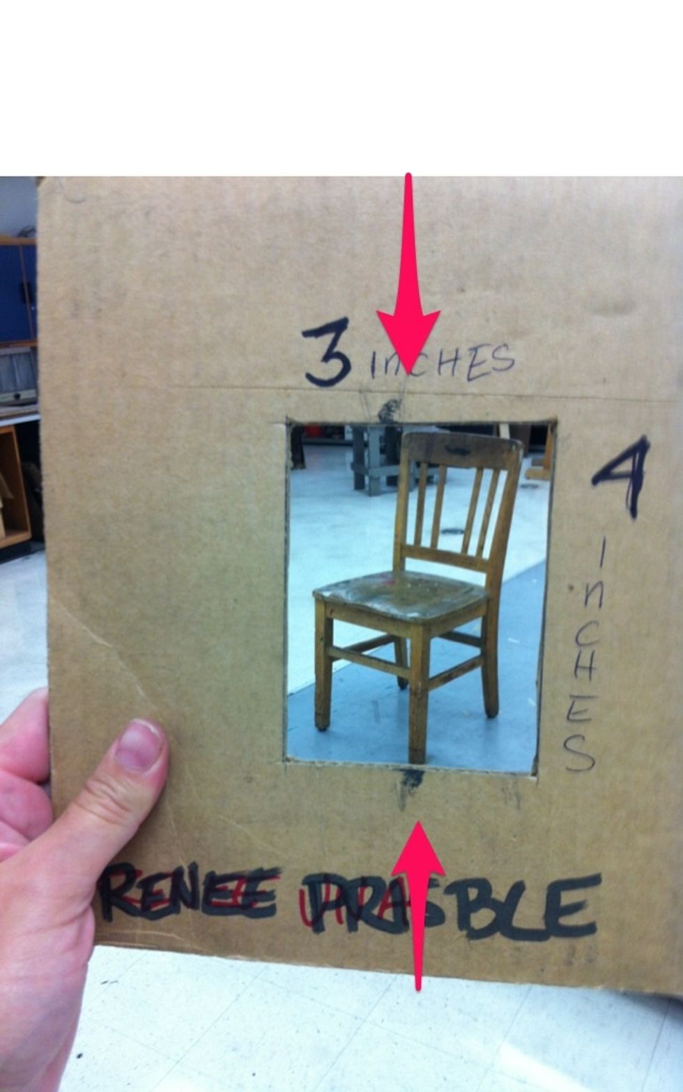 Observe the chair through your view finder. Zoom in and out until the chair touches 2 or more sides of the view finder.