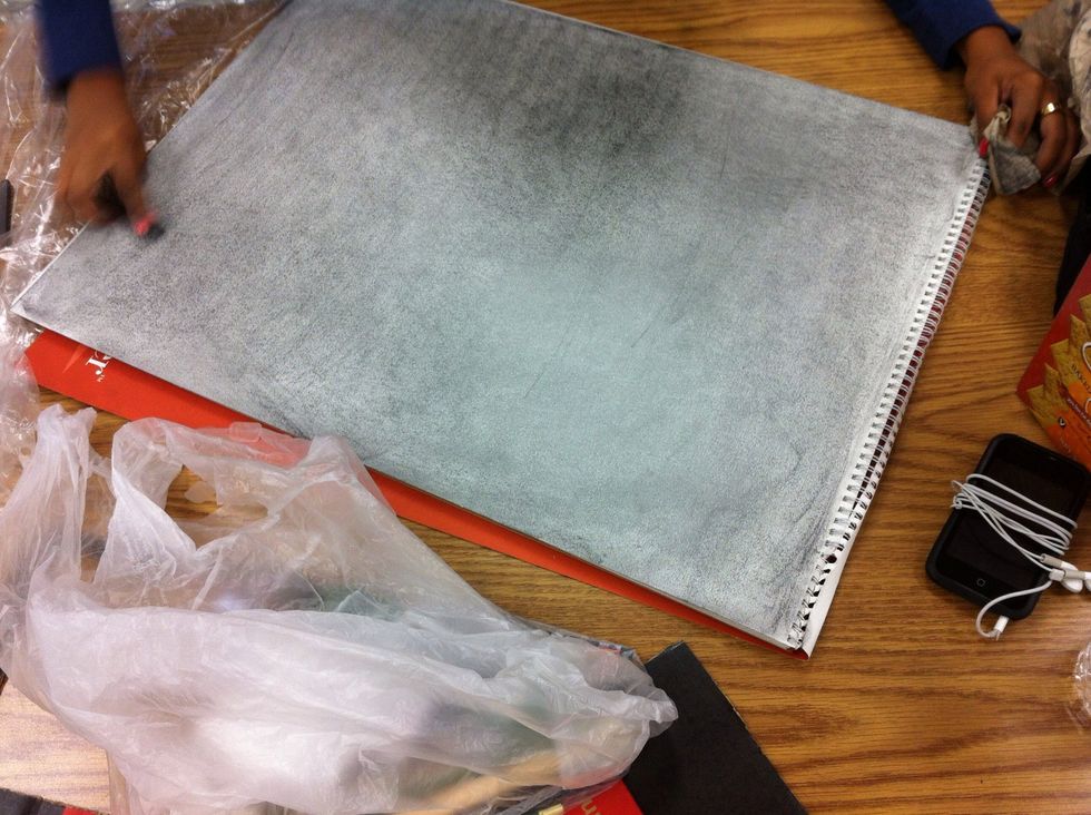 To begin the final drawing tone a sheet of drawing paper medium grey with graphite stick.