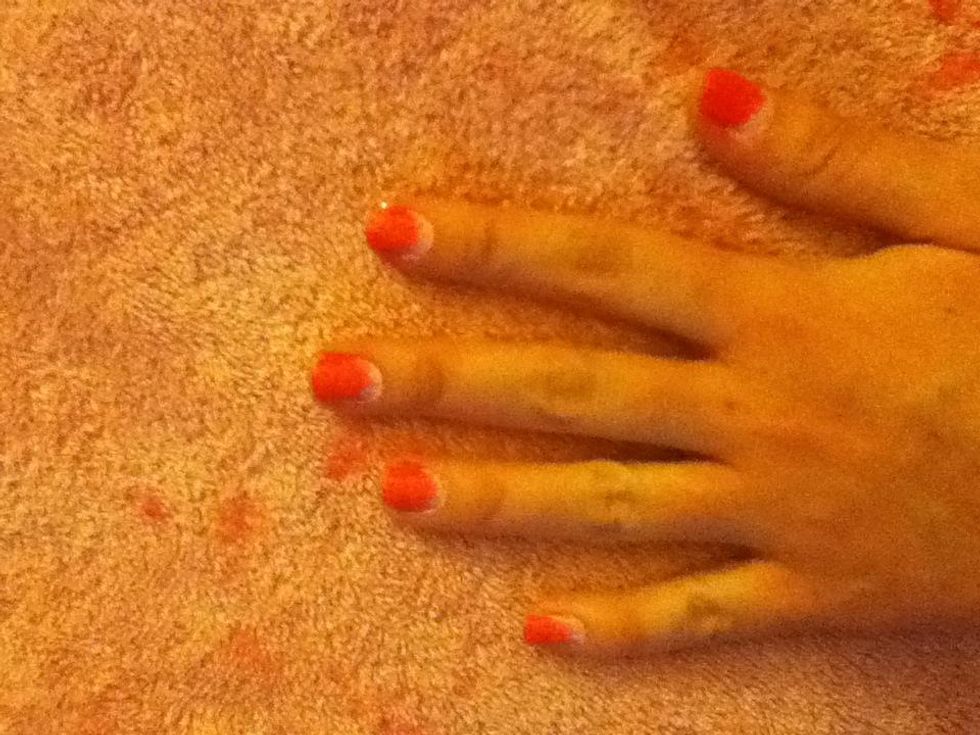 Lightly dap the middle of each nail (where the 2 colors connect) until the colors look faded together like this.