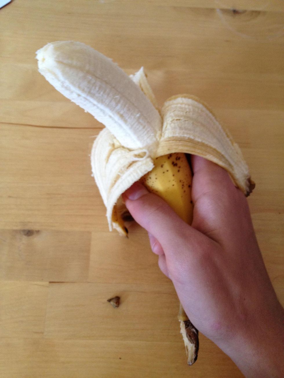 Take a banana.Hold it like this.Press the banana like this.Now peel it.And there you go, opening a banana (the right way).