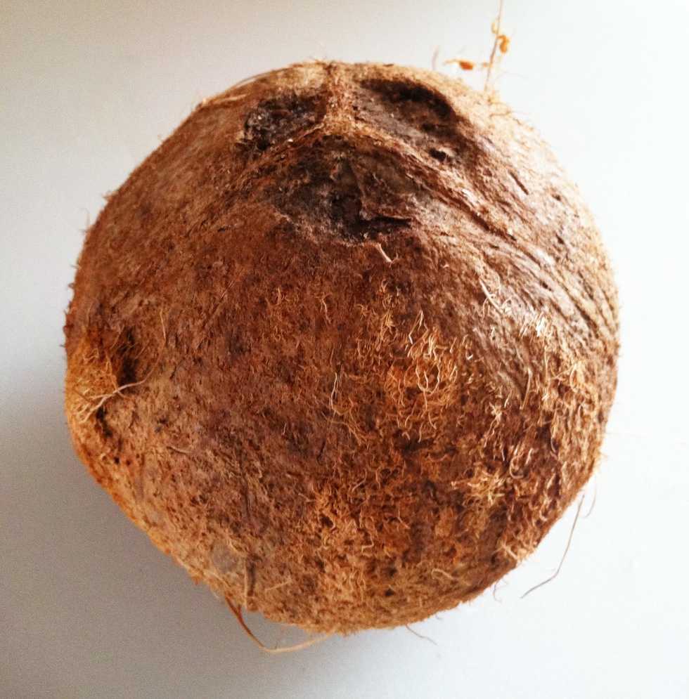 Wash the coconut and hold it "eyes" side up.