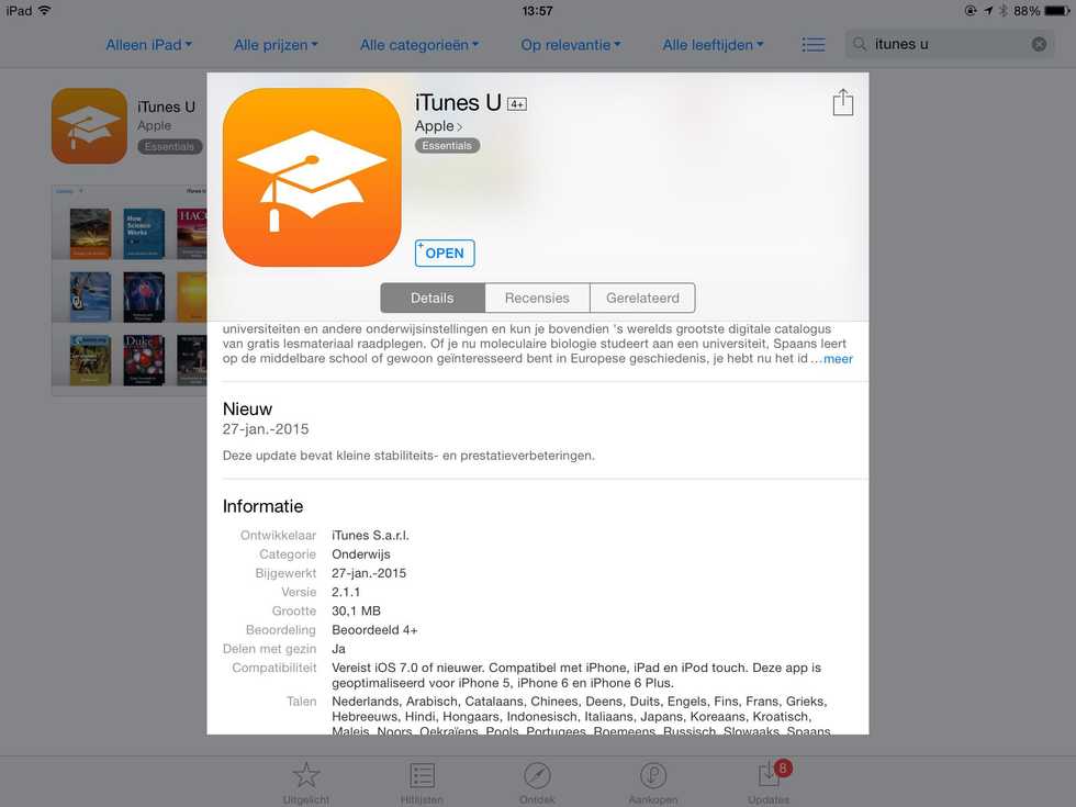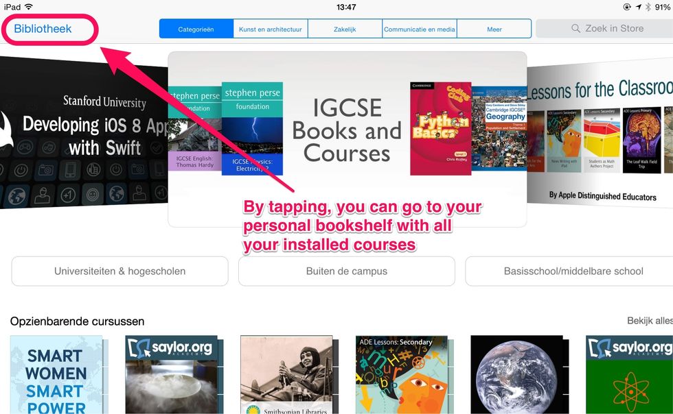 Go to the App Store and install the app iTunes U or tap on this link and install https://itunes.apple.com/be/app/itunes-u/id490217893?l=nl&mt=8