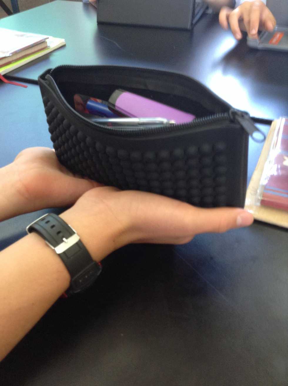 Start by holding the zipperPull!Pull, but make sure that you don't let all the pencils out!PullPull carefullyBut look what happened....You have to fix it up...Finished!