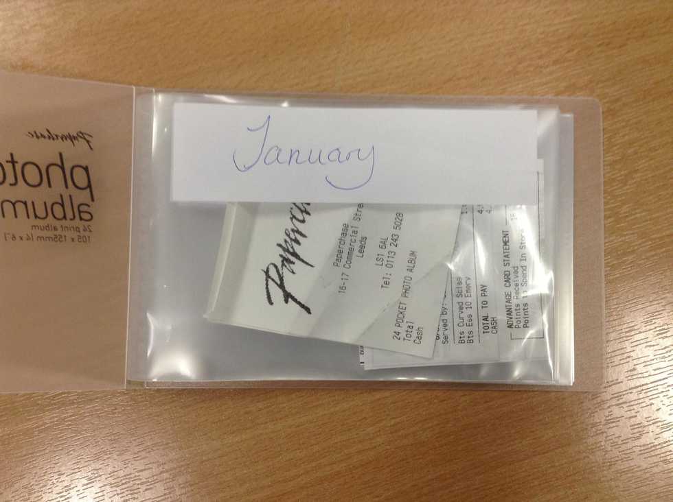 If you think you will need more receipt storage, you could always get a bigger album or get one of those expandable files. The idea is still the same, one wallet/section per month.