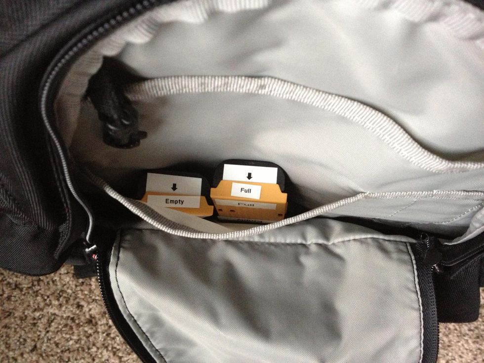 This is what it looks like when the batteries are in your bag. Much easier to find a full battery!
