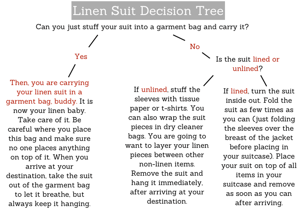 But, when you arrive at your hotel, your linen suit can look like a family of raccoons has nested in it, if not packed correctly.