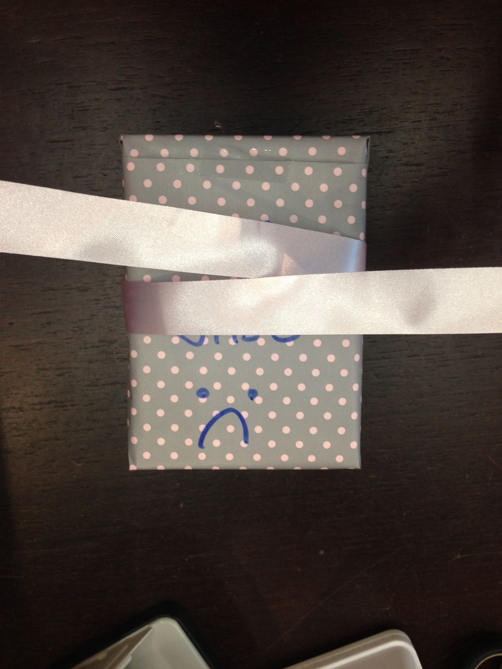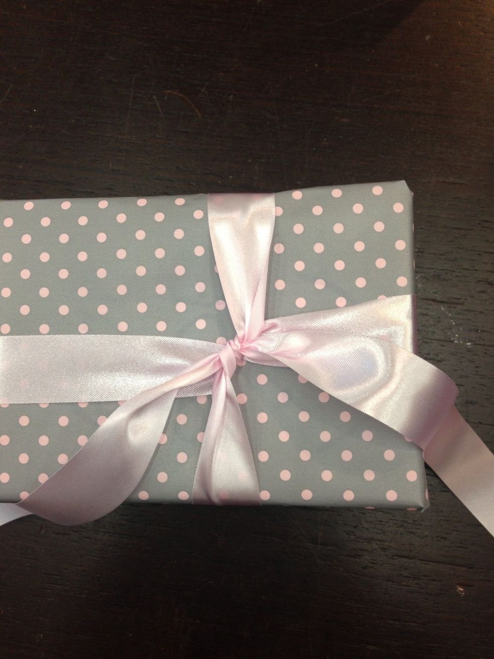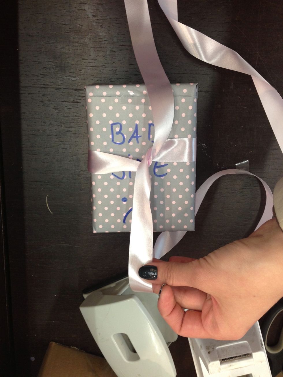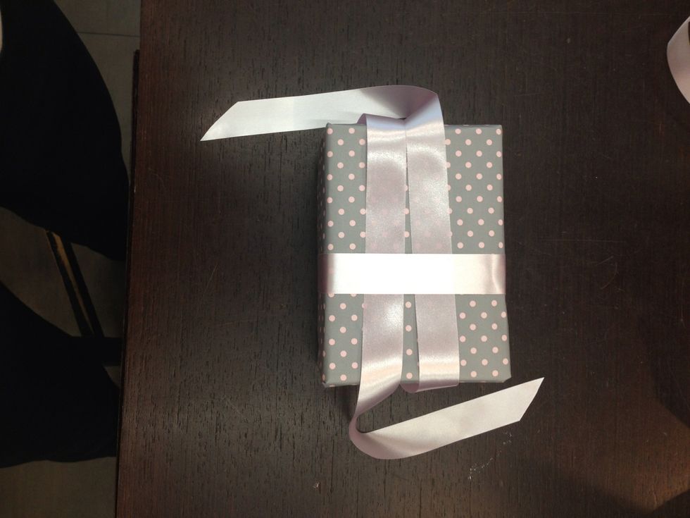 You start to pack a gift from the bottom, so you always have to see bottom of a gift. Cut a proper amount of paper first (it depends on the size of the gift box)