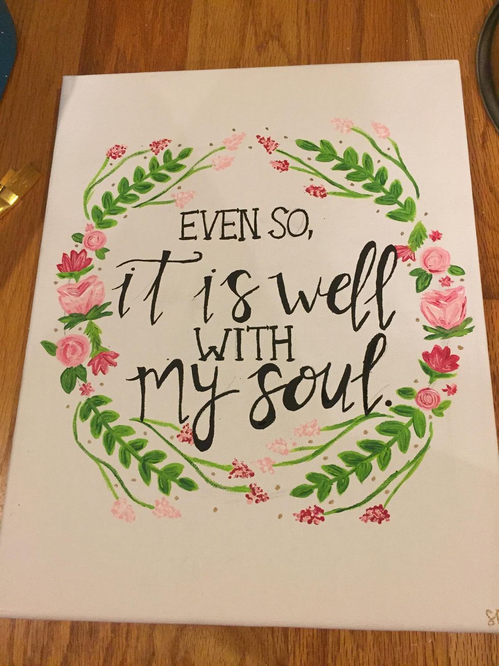 Once your wreath is all painted, pick the quote you would like to write on the inside and sketch it out so that the font and spacing will be just as you want it to be when it's painted on.