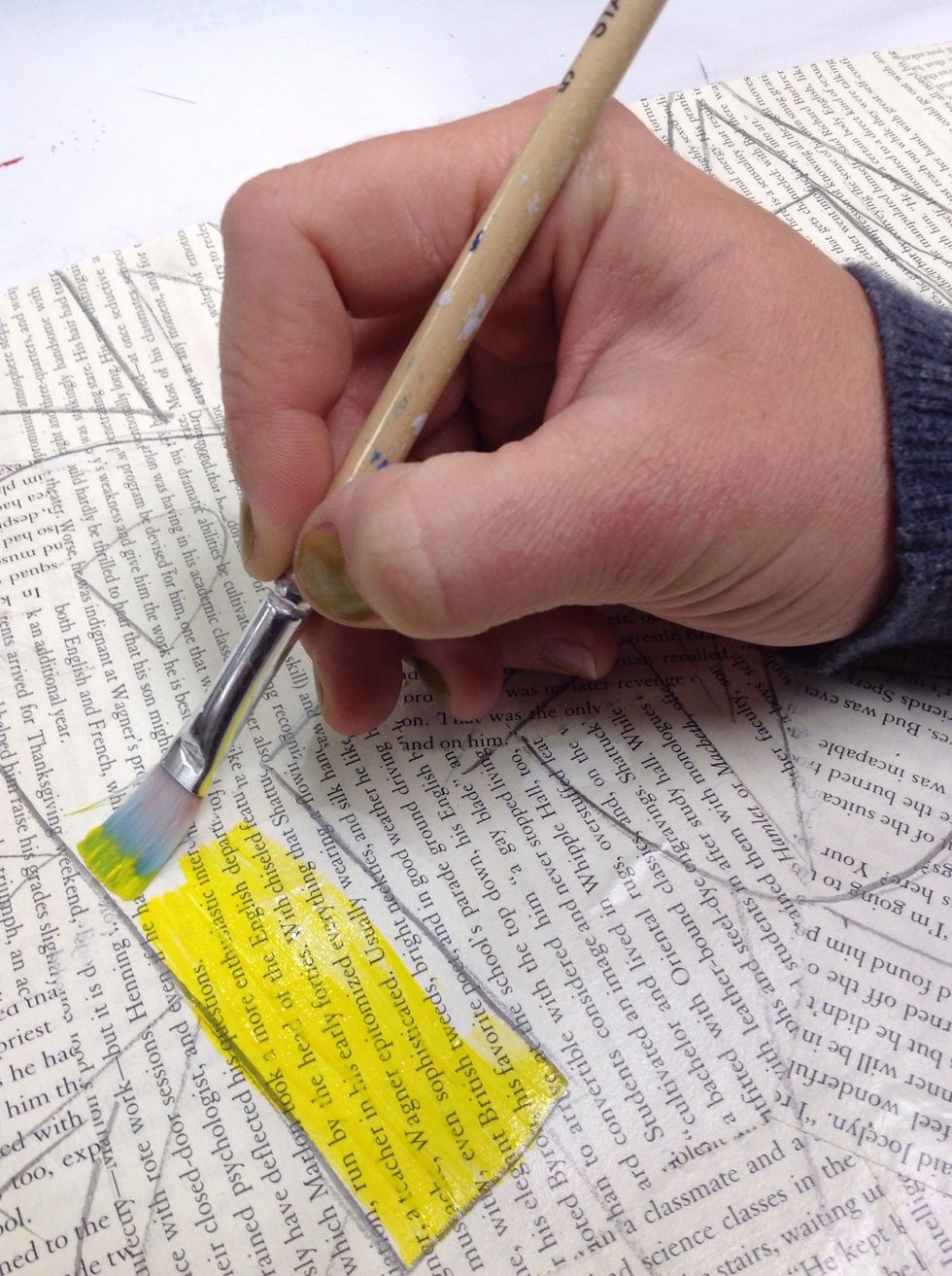 - Yellow, blue, red, green, and black acrylic paint.