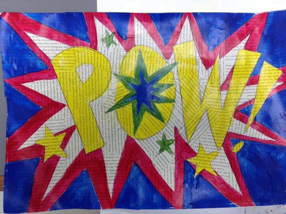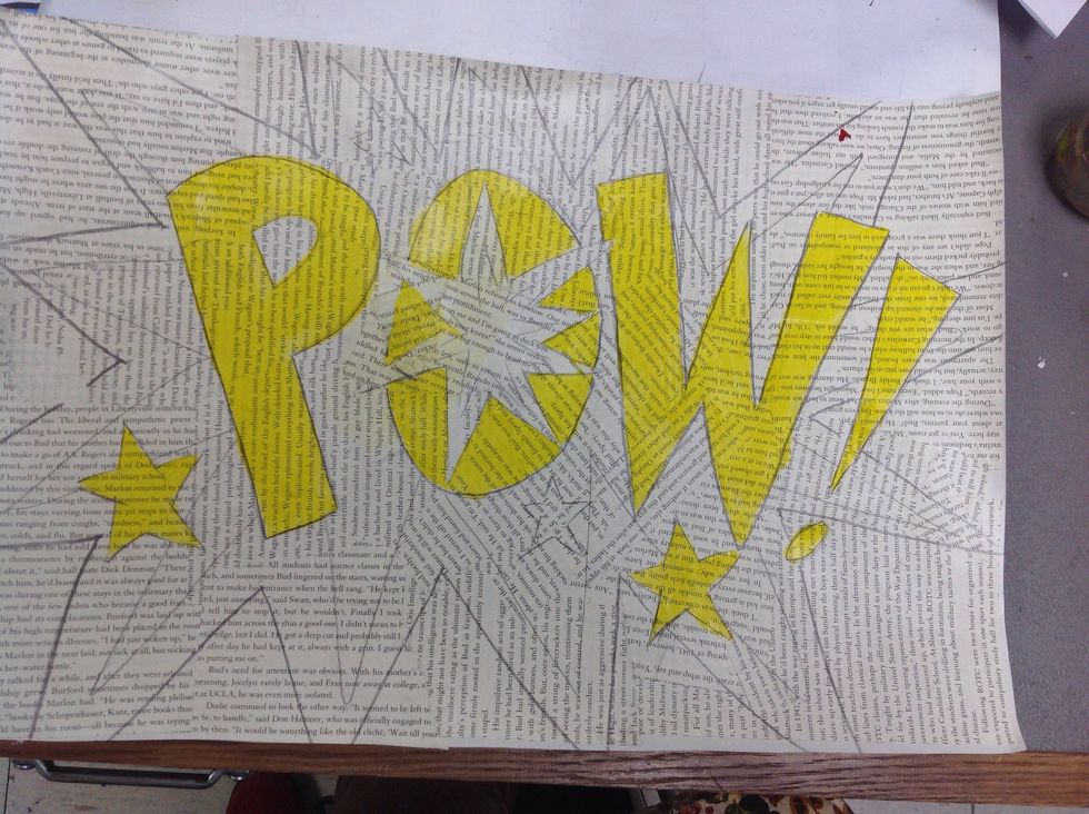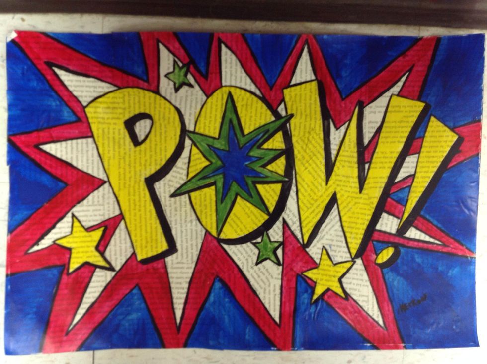 Choose your onomatopoeia and sketch it onto the paper you created. Add pictures that go with the word. I'm using stars.