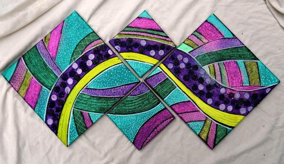 Apply Art anthology "Stucco" to one of the stripes on the canvas then use a Princeton Catalyst tool to add texture.