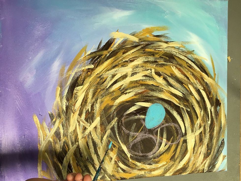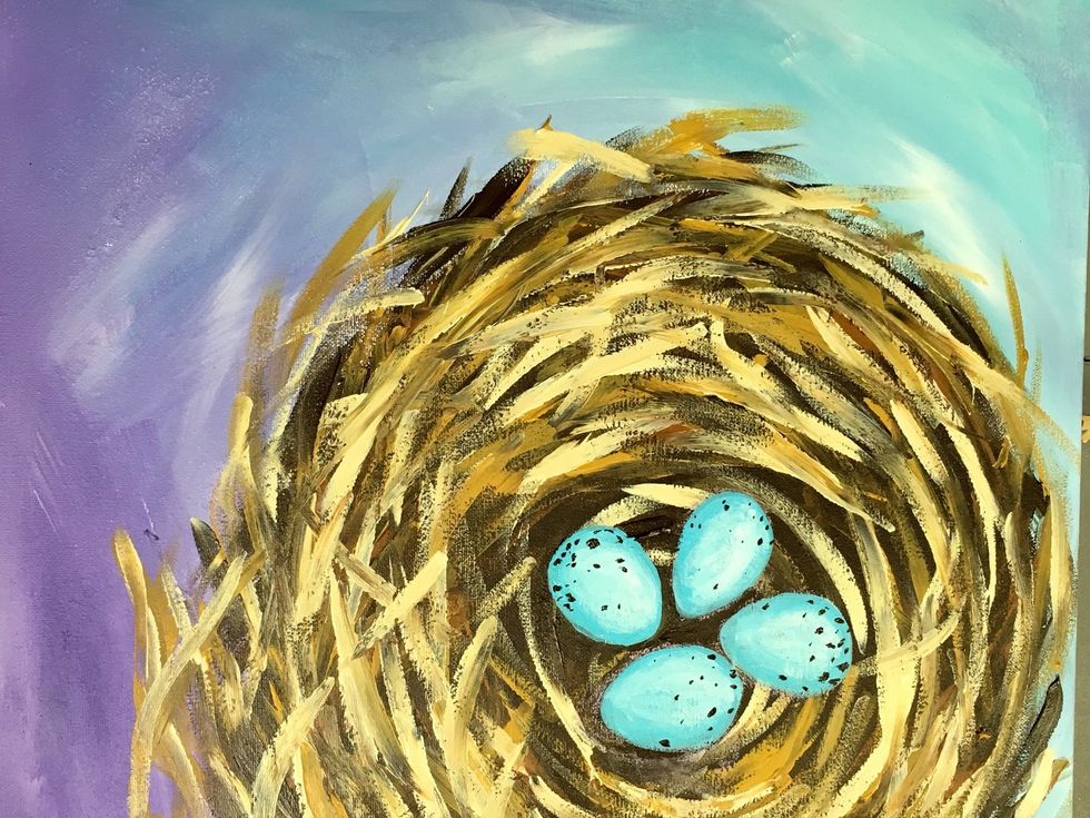 Use the same small brush to paint the eggs the light blue color. We will also use white towards the center of each egg to make them look more 3D.