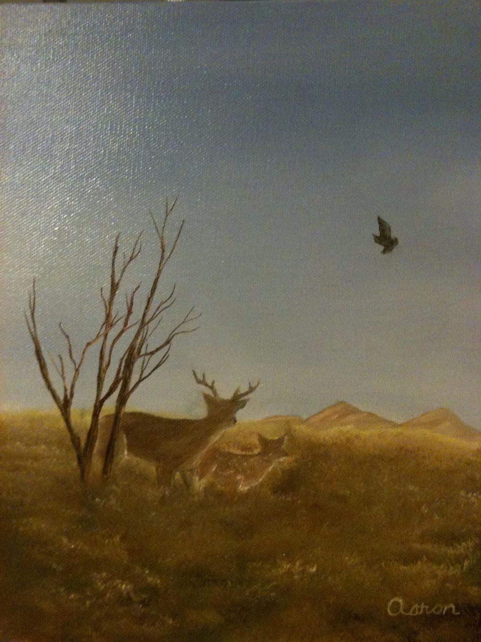 Notice I covered up the trees and part of the deer and mountains. Don't be afraid to touch them. Go over the trees. They are gonna look different at the end anyway.