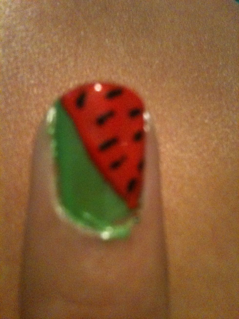 Then take your sharpie and draw little seeds as if your nail was a watermelon!!