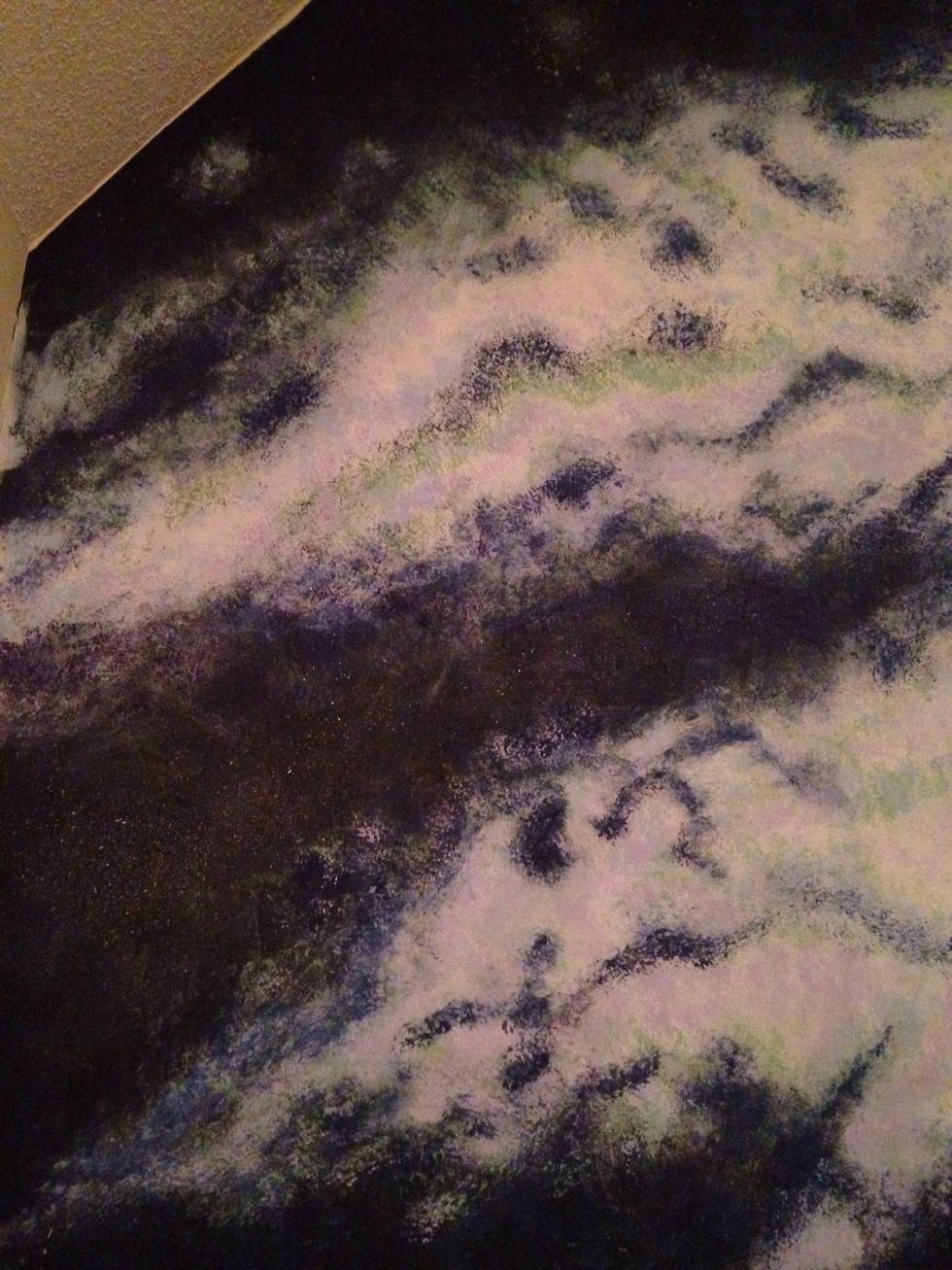 -and rub in to give the illusion of dark clouds. Do this mainly on the darker, black areas