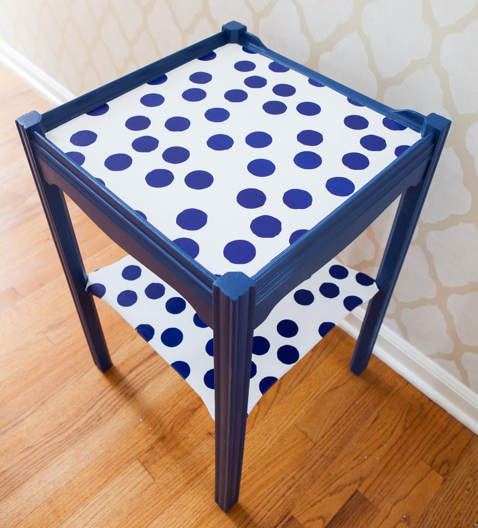 Using an angled brush, paint table in Rich Navy. Apply 2 light coats, letting the first one dry before applying the second. Once dry, check to make sure color is even, apply third coat if needed.