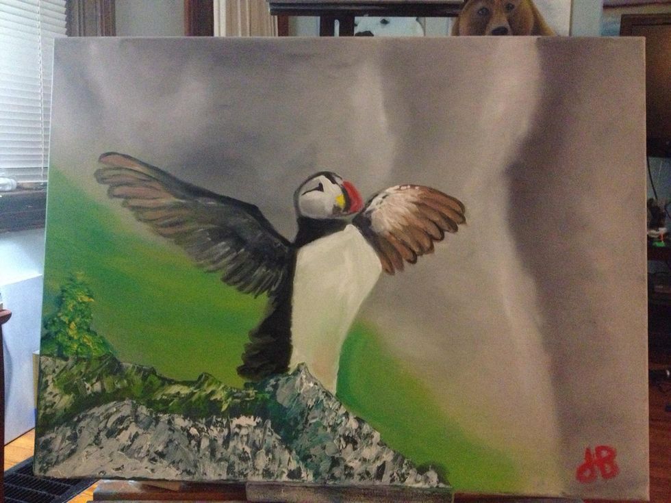 Use your fingers to scrub in some black and white for a blurry, rocky background.