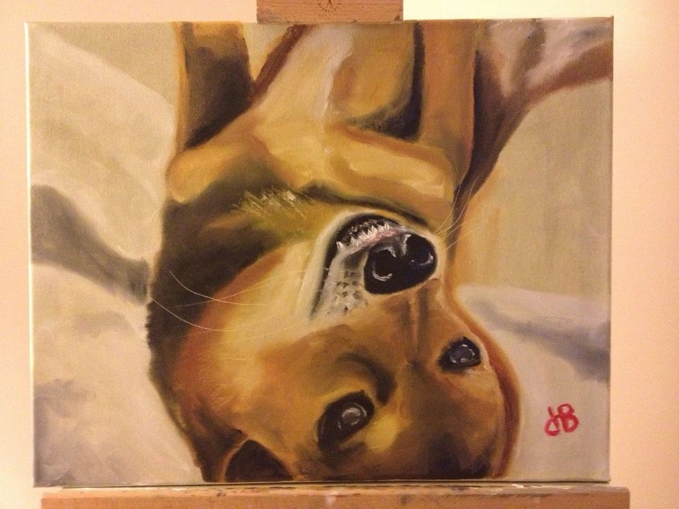 Step back and view from across the room. Adjust any last things as necessary. Add some red to your pinky and sign.