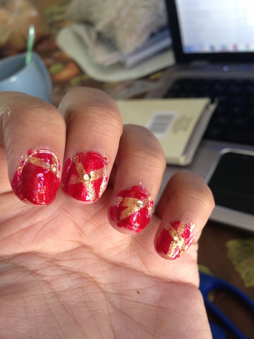 Pull off strips and place rhinestones as you please. I used mine to hide my mistakes. Clean up as necessary (i'm really messy, but some people are cleaner).