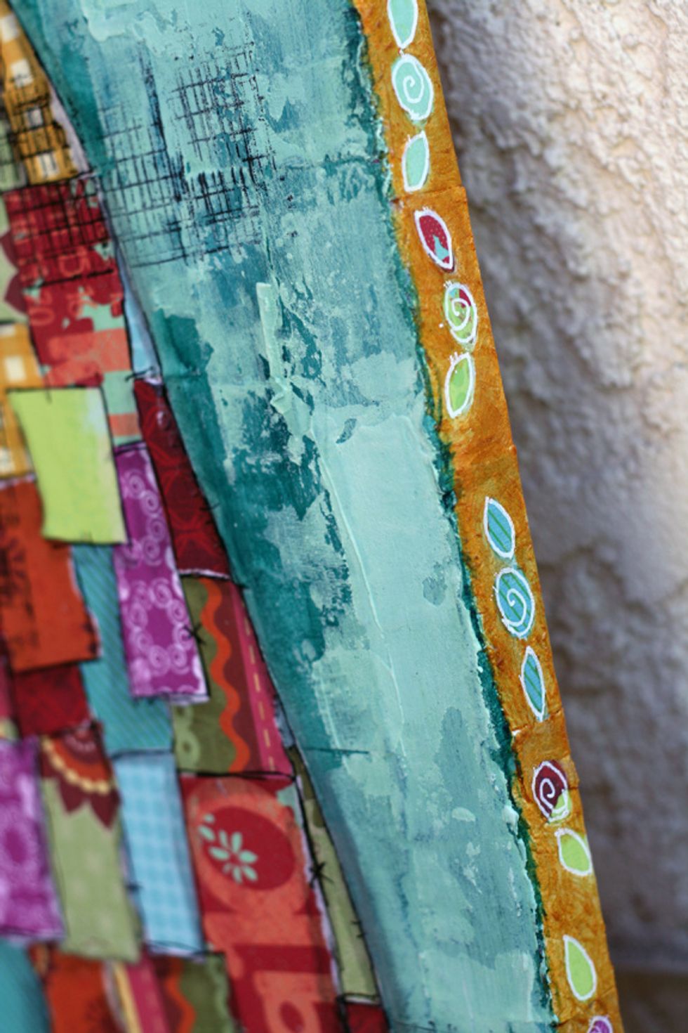 I sketched little flowers and leaves on the edges of the canvas, too, and painted gesso around them.