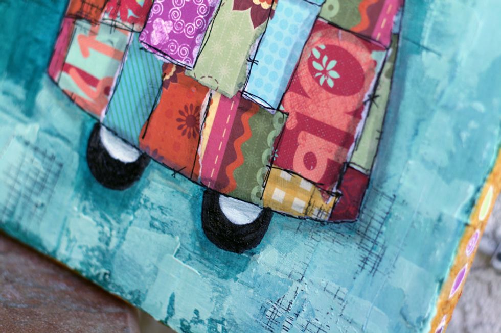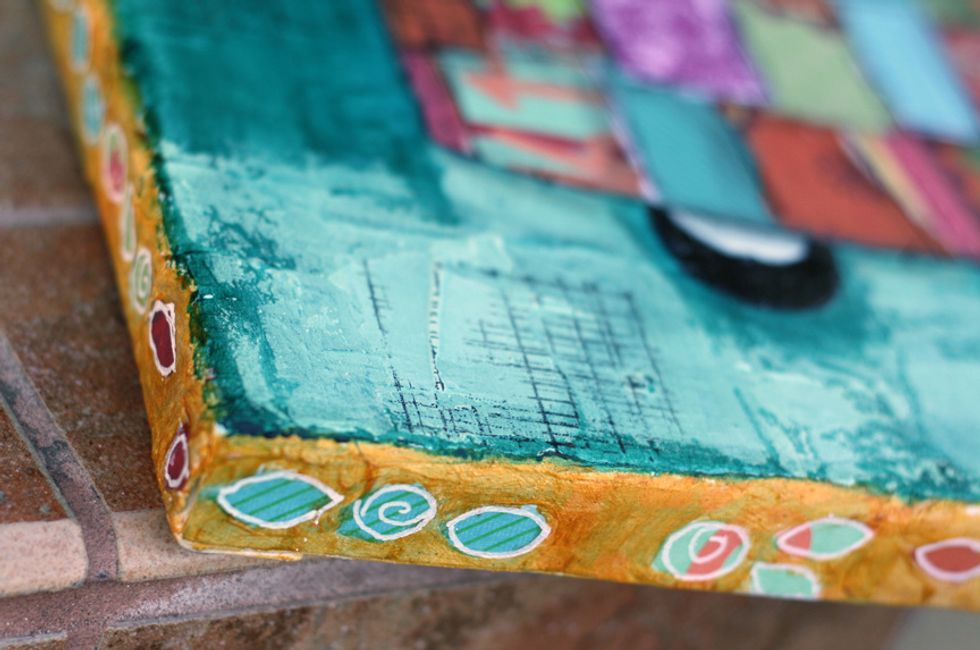 I randomly stamped a texture stamp around the canvas with black ink.