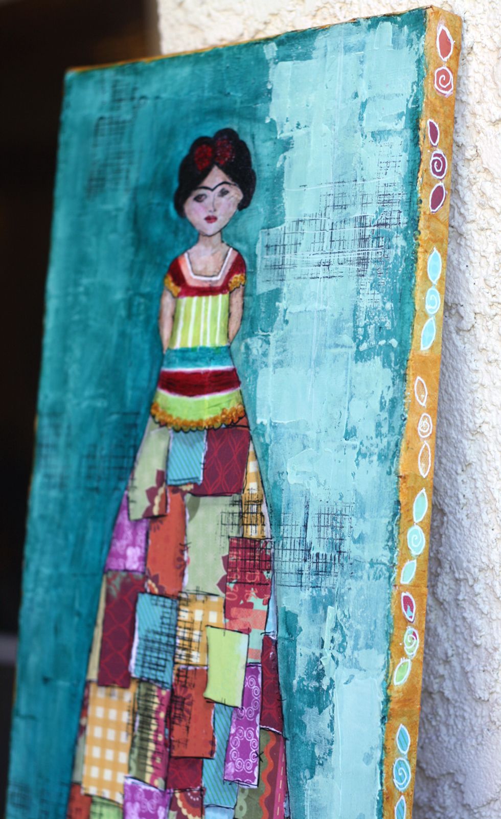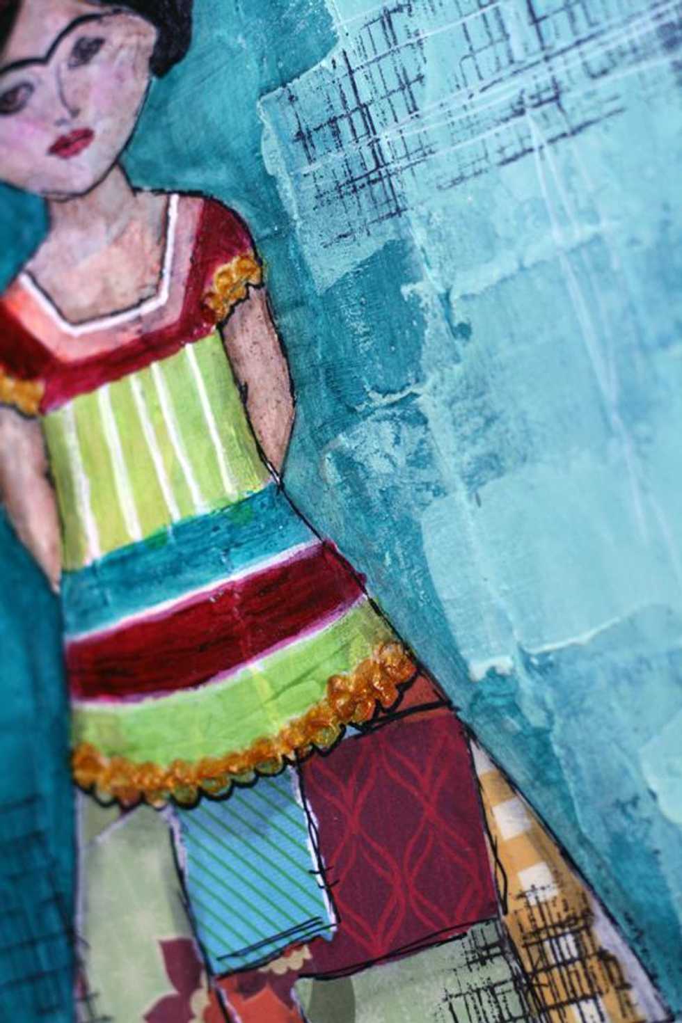 I sketched out a dress, then painted around it with gesso.