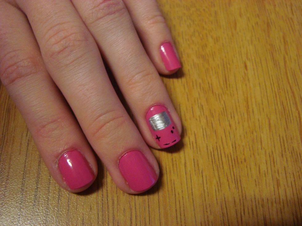 Make two small black dots on the right side, giving you your "A" and "B" buttons. And tada! You've got a Gameboy on your nails. ;)