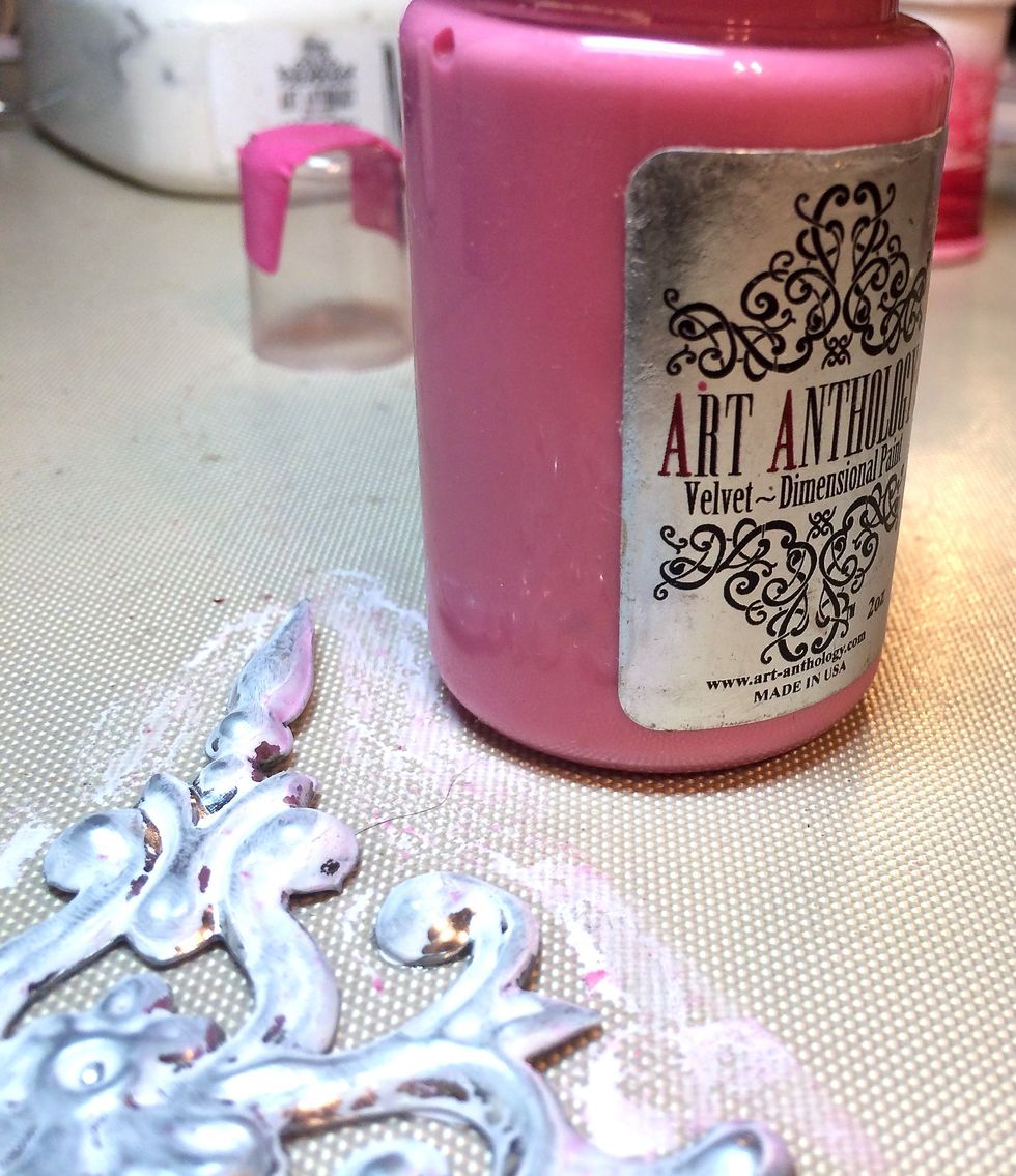 Next, I rub Cotton Candy Velvet onto the medallion.