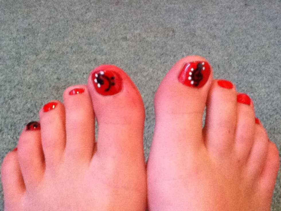 On one big toe you will be painting something along the lines of this, a treble clef (if you do not know how to draw one just comment and i will make a quick guide :)