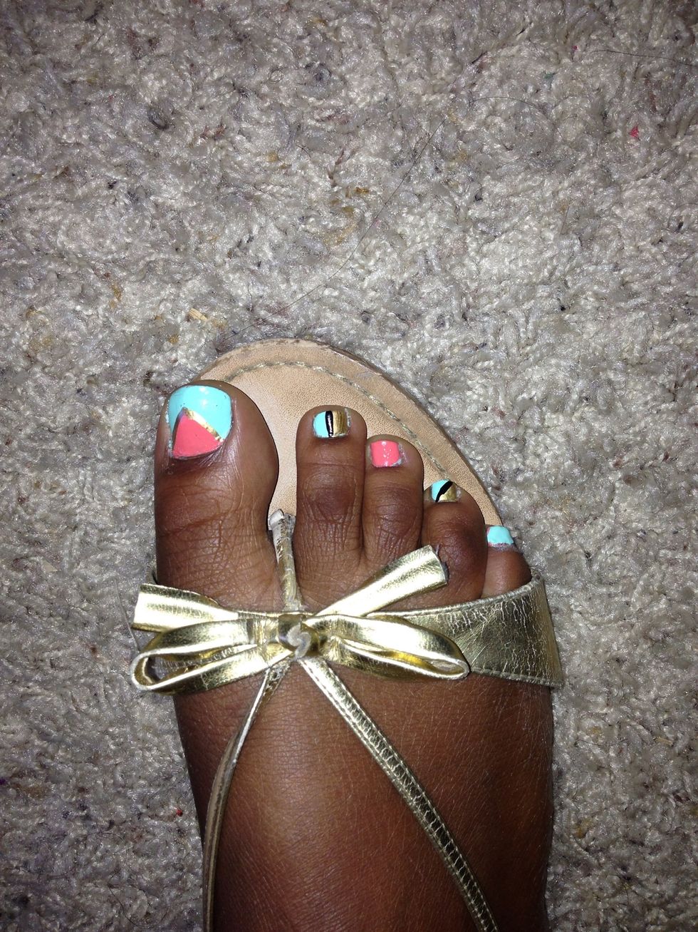 Now pant half of your nail any way you want. Then take the nail art brush and make a line just like the others and add a top coat you are done!!