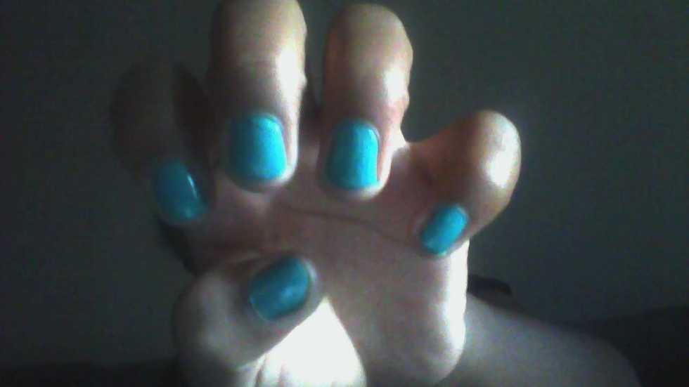 First grab a paper plate and blue nail polish and start painting in 3 or less strokes. Then when the nails are dry put on your top coat and your ready to rock the run way