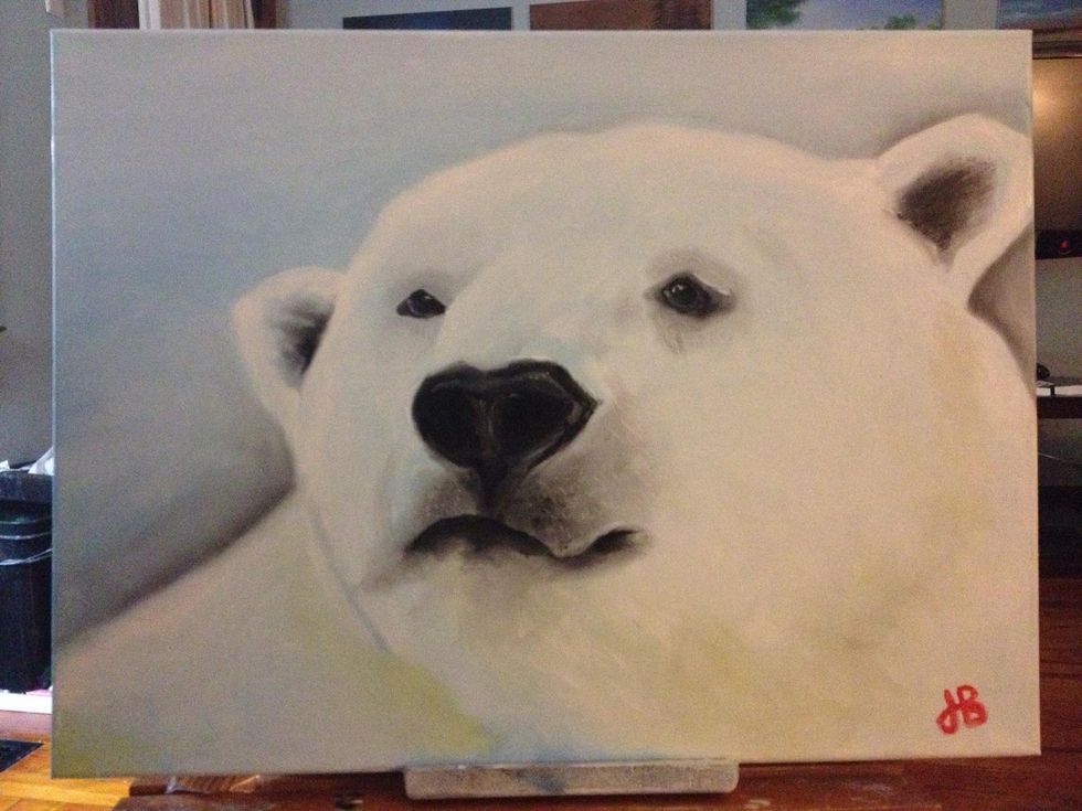 In the area where the polar bear is, I scrubbed in the basic shape using pure liquid white.