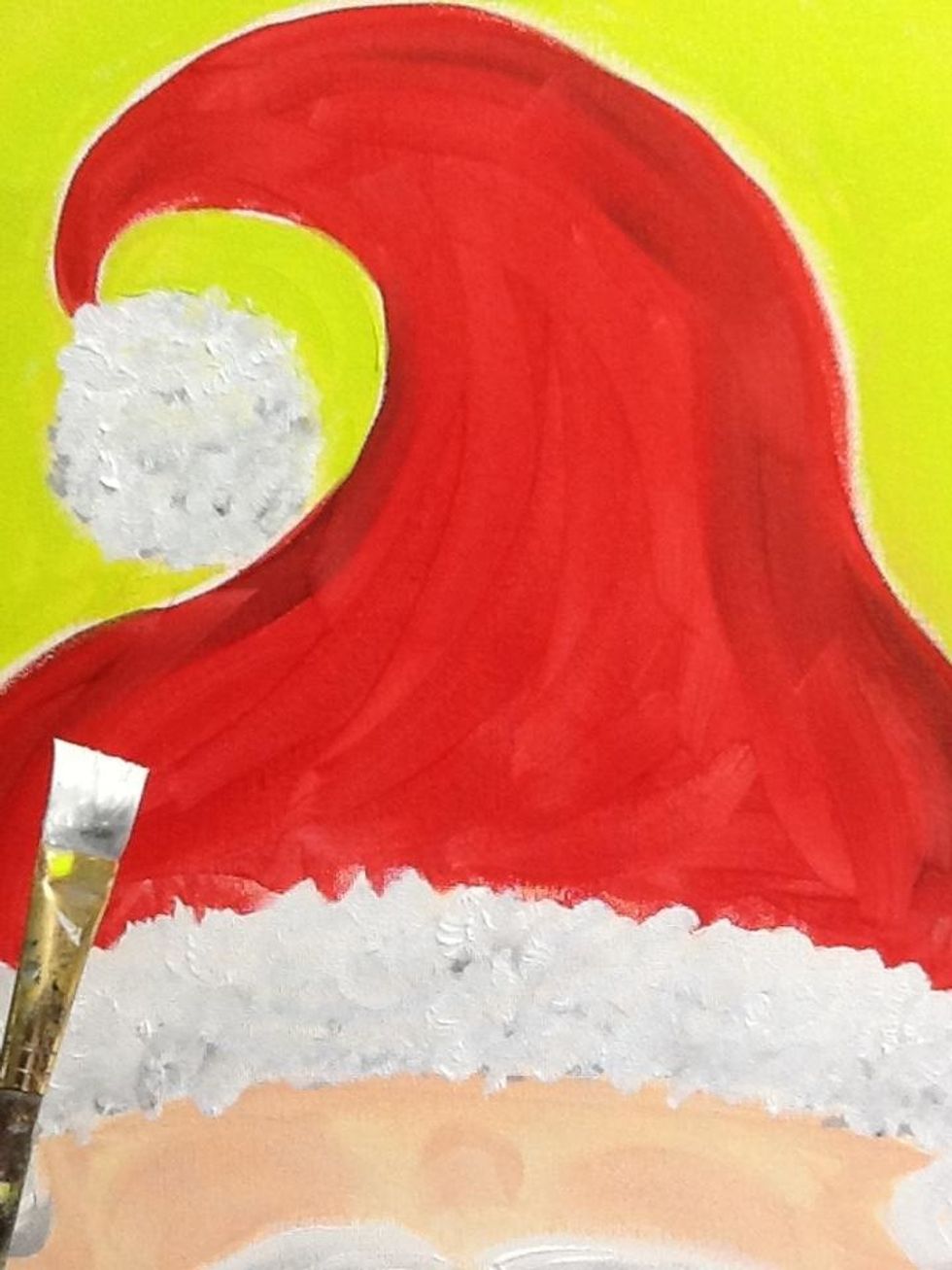 Whoa! It's time to paint red. Use a 1/2" brush to paint the cap red. Leave the bottom section rugged as the band of the cap is fuzzy.