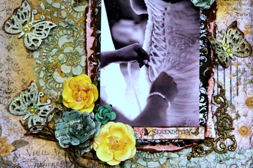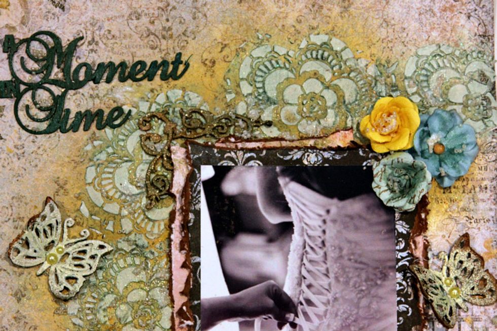Start by spraying area where your photo will be places with Timeless Colorations. Stencil modeling past on top and dry.