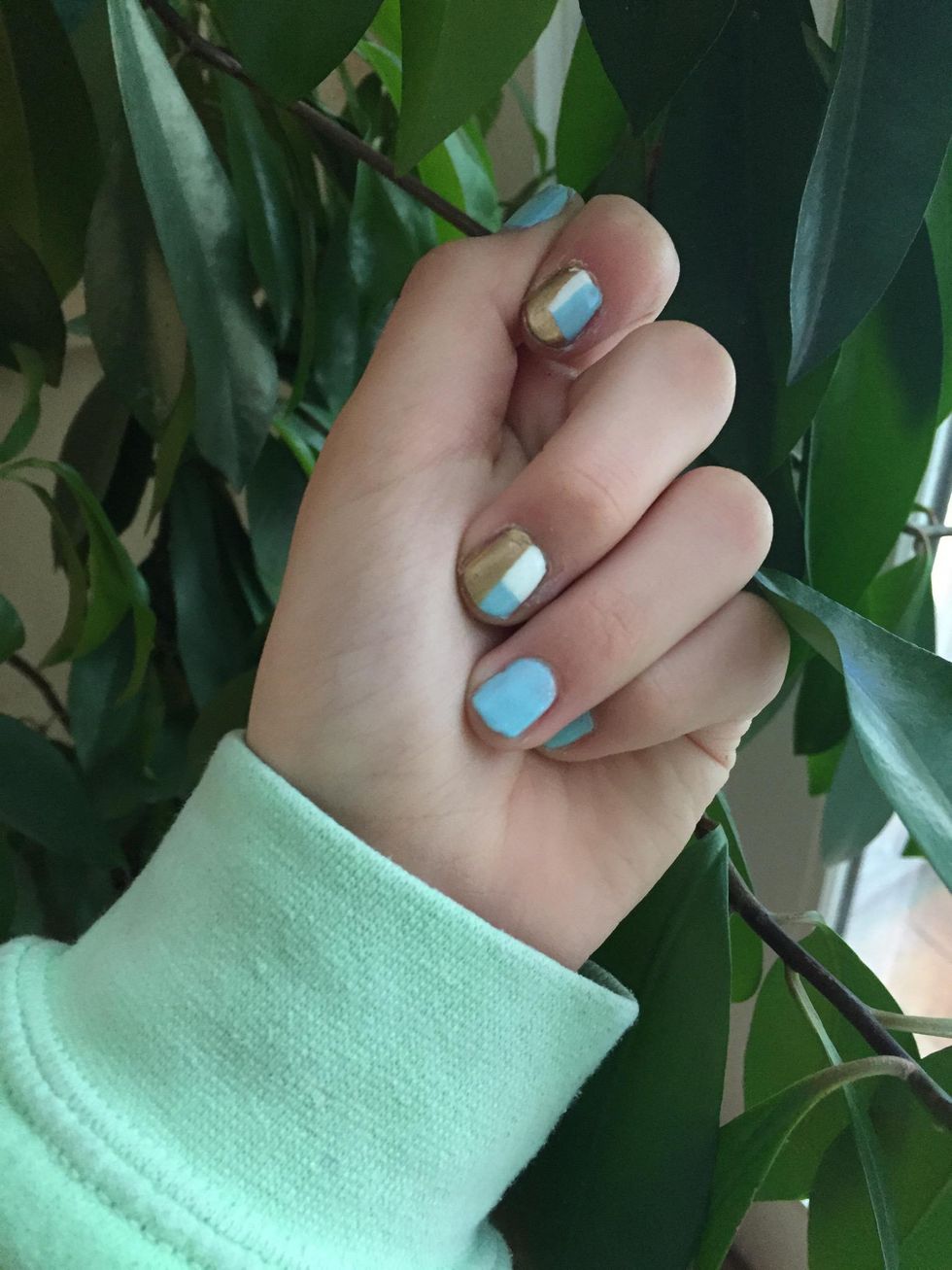 Tear a piece of tape and dab it on your clothing to reduce the stickiness! (And not smudge the base coat) ๐