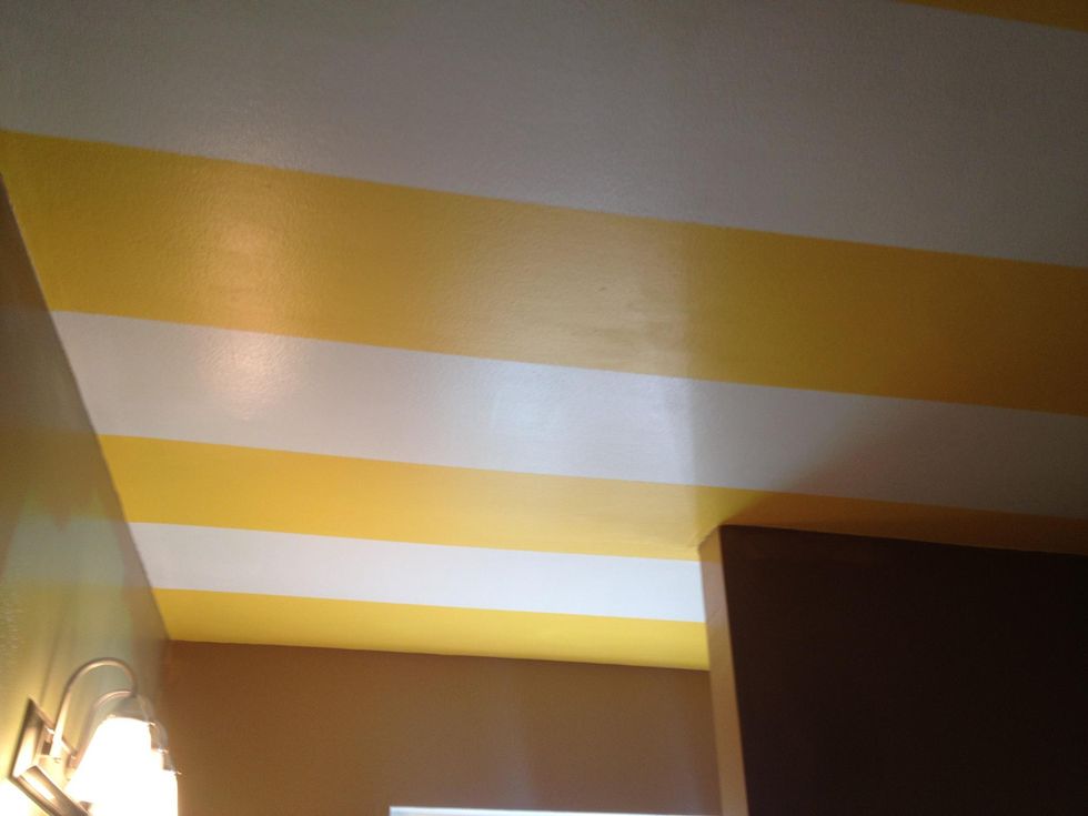 VOILA! when you're done, finish painting the walls by cutting in the ceiling, be careful not to get paint on your new stripes! we love how it turned out!