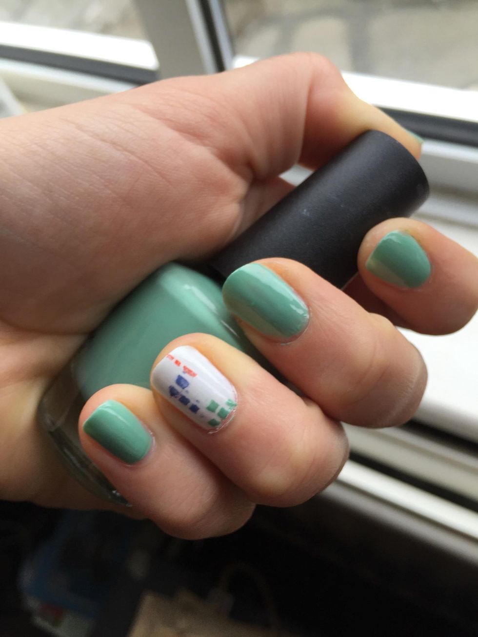 Remove the tape (before the polish dries!) and you will be left with something like this. Top coat will even out any bumps 😉