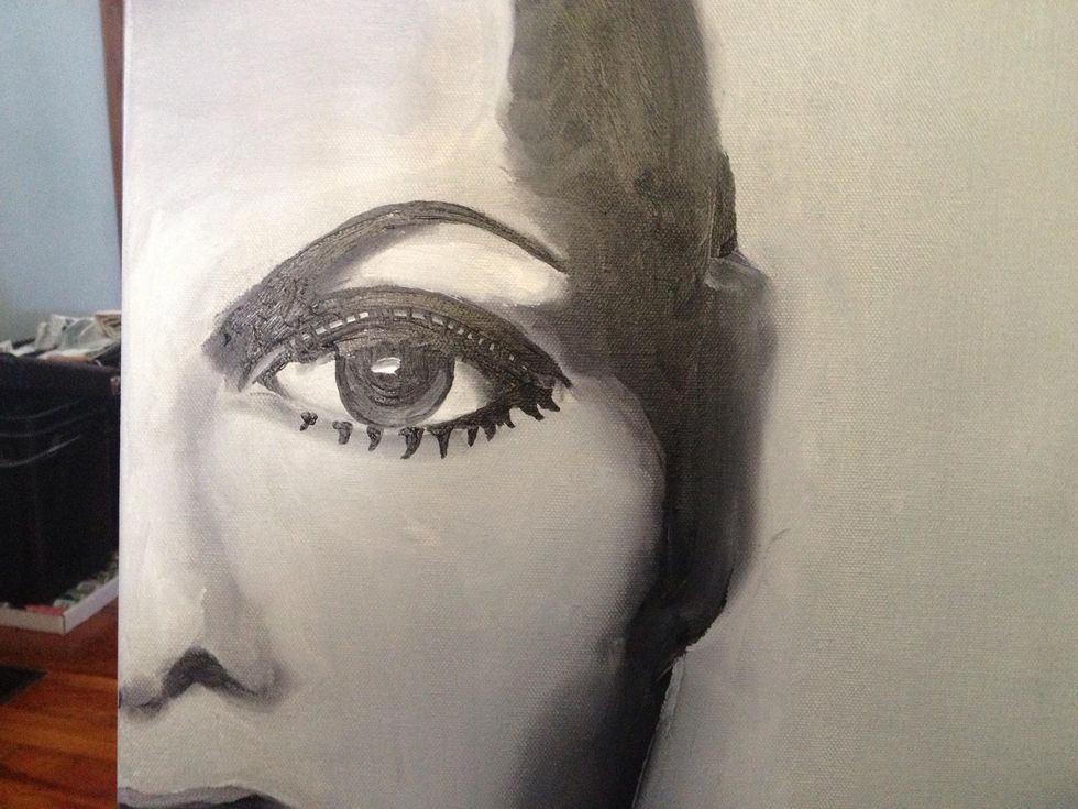 Step one is always priming your canvas with a mixture of liquid white and black. This will help you blend as you create.
