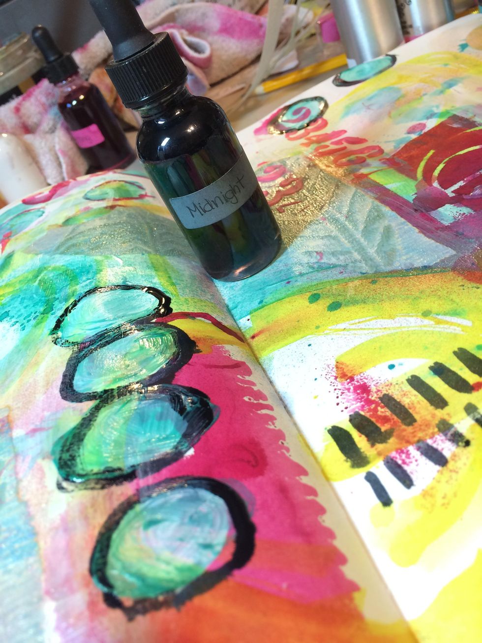 I used the eye dropper from the Midnight Minx Shimmering Inks as a writing utensil and outlined my circles.